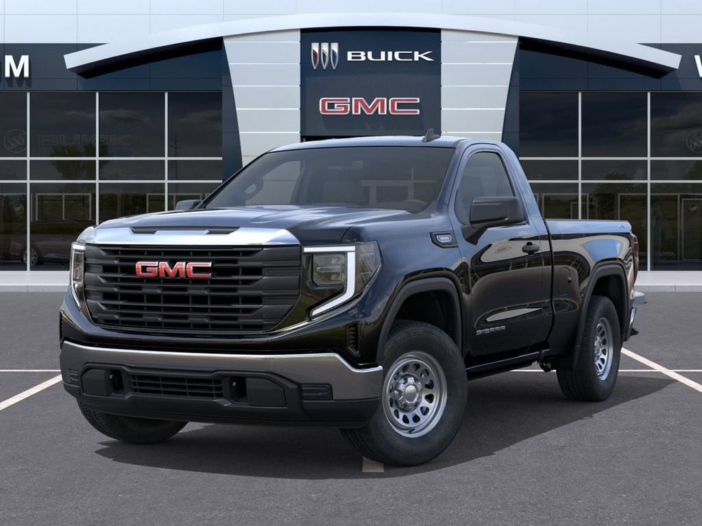 Onyx Black 2026 GMC Sierra 1500 Pro 4WD 8-Speed Automatic 2.7L I4 Turbocharged DOHC 16V LEV3-SULEV30 310hp 8-Speed Automatic, 4WD, Jet Black Vinyl. Price includes: $1750 - Bonus Cash. Exp. 04/30/2026 $1750 - Purchase Allowance. Exp. 04/30/2026