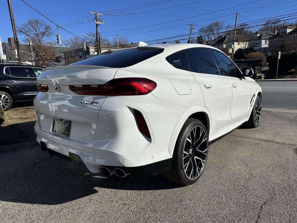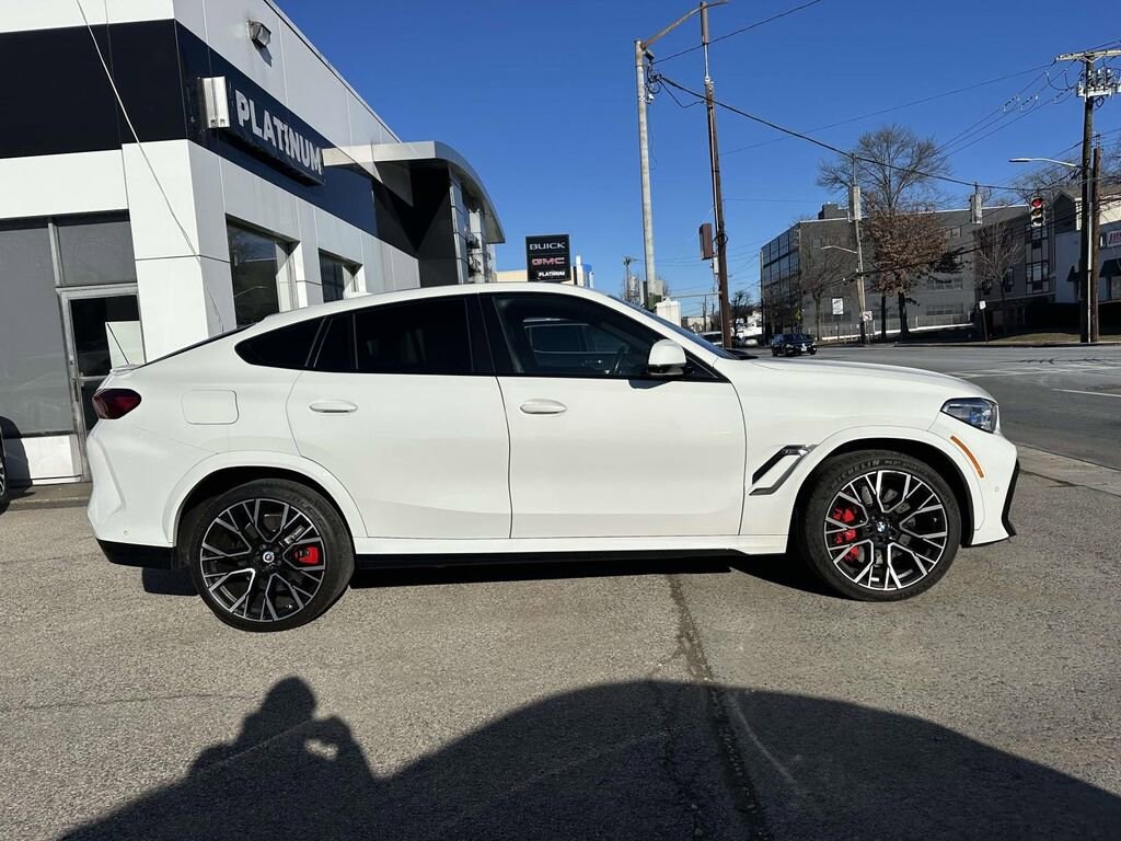 Alpine White 2023 BMW X6 M AWD 8-Speed Automatic Sport 4.4L V8 DOHC 32V TwinPower Turbo 16 Speakers, 4-Wheel Disc Brakes, ABS brakes, Active Driving Assistant Pro, Adaptive suspension, Air Conditioning, Alloy wheels, AM/FM radio: SiriusXM with 360L, AM/FM Stereo, Apple CarPlay & Android Auto Compatibility, Auto High-beam Headlights, Auto-leveling suspension, Automatic temperature control, BMW Assist eCall, BMW TeleServices, Brake assist, Connected Package Pro, ConnectedDrive Services, Delay-off headlights, Drive Recorder, Driving Assistance Professional Package, Dual front impact airbags, Dual front side impact airbags, Electronic Stability Control, Emergency communication system: BMW Assist eCall, Enhanced USB & Bluetooth, Extended Merino Leather Seat Upholstery, Extended Traffic Jam Assistant, Exterior Parking Camera Rear, Four wheel independent suspension, Front anti-roll bar, Front Bucket Seats, Front dual zone A/C, Fully automatic headlights, harman/kardon Surround Sound System, harman/kardon® Speakers, Headlight cleaning, Heads-Up Display, Heated Front Seats, Heated front seats, Live Cockpit Pro w/Navigation, Low tire pressure warning, Lumbar Support, M Compound Brakes w/Red Calipers, Memory seat, Multi-Function Seats w/Lumbar Support, Navigation System, Occupant sensing airbag, Overhead airbag, Panic alarm, Power driver seat, Power Front Seats, Power Liftgate, Power moonroof, Power passenger seat, Power steering, Power windows, Radio data system, Rear air conditioning, Rear anti-roll bar, Rear dual zone A/C, Rear window defroster, Remote keyless entry, Security system, SiriusXM Satellite Radio w/1 Year Subscription, Speed control, Speed-sensing steering, Steering wheel memory, Steering wheel mounted A/C controls, Steering wheel mounted audio controls, Traction control, Wheels: 21 x 10.5 Fr & 22 x 11.5 Rr Bi-Color, WiFi Hotspot, Wireless Charging.