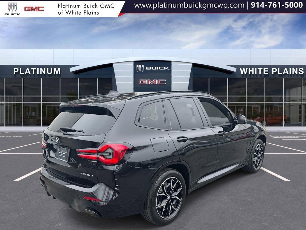 Black Sapphire Metallic 2024 BMW X3 xDrive30i AWD 8-Speed Automatic Sport I4 8-Speed Automatic Sport, 12 Speakers, 4-Wheel Disc Brakes, ABS brakes, Aerodynamic Kit, Air Conditioning, Alloy wheels, AM/FM Radio, AM/FM radio: SiriusXM, Apple CarPlay & Android Auto Compatibility, Auto High-beam Headlights, Automatic temperature control, BMW Assist eCall, BMW TeleServices, Brake assist, Comfort Access Keyless Entry, Connected Package Pro, ConnectedDrive Services, Delay-off headlights, Dual front impact airbags, Dual front side impact airbags, Electronic Stability Control, Emergency communication system: BMW Assist eCall, Enhanced USB & Bluetooth w/Smartphone Integration, Extended Shadowline Trim, Exterior Parking Camera Rear, Four wheel independent suspension, Front anti-roll bar, Front Bucket Seats, Front dual zone A/C, Fully automatic headlights, harman/kardon Surround Sound System, Head-Up Display, Heated Front Seats, Heated Steering Wheel, Hi-Fi Sound System, Knee airbag, Live Cockpit Pro w/Navigation, Low tire pressure warning, Lumbar Support, M Shadowline Lights, M Sport Package, M Sport Package (337), M Steering Wheel, Memory seat, Navigation, Navigation System, Occupant sensing airbag, Overhead airbag, Panic alarm, Panoramic Moonroof, Power driver seat, Power Front Seats, Power Liftgate, Power passenger seat, Power steering, Power windows, Premium Package, Radio data system, Rear air conditioning, Rear anti-roll bar, Rear window defroster, Remote Engine Start, Remote keyless entry, Roof Rails in High-Gloss Shadowline, Security system, Shadowline Exterior Trim, Shadowline Package, SiriusXM w/360L & 1 Yr Platinum Plan Subscription, Smoke Grey Aluminum Rhombicle Trim, Speed control, Speed-sensing steering, Split folding rear seat, Steering wheel mounted audio controls, Traction control, Wheels: 19 x 7.5 M Y-Spoke Bi-Color (Style 887M), WiFi Hotspot, Without Exterior Lines Designation.