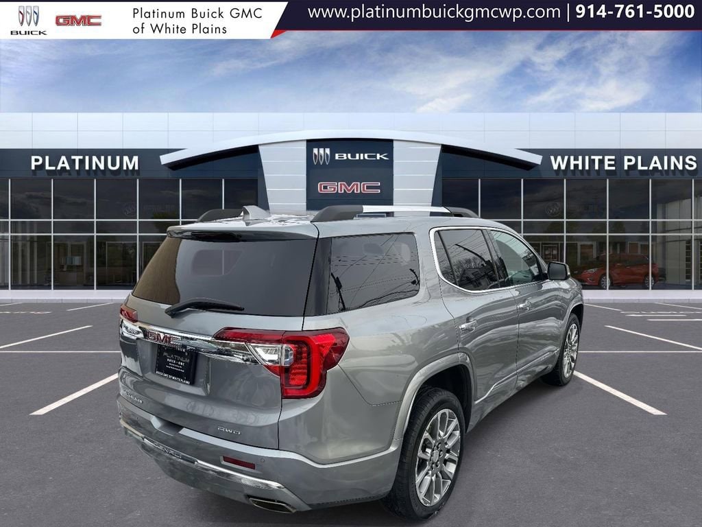 Certified. Sterling Metallic 2023 GMC Acadia Denali AWD 9-Speed Automatic 3.6L V6 SIDI GMC CERTIFIED PRE-OWNED, AWD, Jet Black w/Perforated Leather-Appointed Seat Trim, 1st & 2nd Row All-Weather Floor Liner (LPO), 20 Ultra Bright Machined Aluminum Wheels, 3rd Row All-Weather Floor Liner, 3rd row seats: split-bench, 4-Wheel Disc Brakes, 7-Passenger, 8 Speakers, 8-Way Power Driver Seat Adjuster, 8-Way Power Passenger Seat Adjuster, ABS brakes, Adaptive Cruise Control, Air Conditioning, Alloy wheels, AM/FM radio: SiriusXM with 360L, Apple CarPlay/Android Auto, Auto High-beam Headlights, Auto-dimming door mirrors, Automatic temperature control, Bose Premium 8-Speaker Audio System Feature, Brake assist, Bumpers: body-color, Delay-off headlights, Denali Technology Package, Dual front impact airbags, Dual front side impact airbags, Dual SkyScape 2-Panel Power Sunroof, Electronic Stability Control, Emergency communication system: OnStar and GMC connected services capable, Enhanced Automatic Emergency Braking, Floor Liner Package (LPO), Four wheel independent suspension, Front anti-roll bar, Front Bucket Seats, Front dual zone A/C, Front fog lights, Front License Plate Bracket, Fully automatic headlights, HD Surround Vision, Heads-Up Display, Heated & Ventilated Driver & Front Passenger Seats, Heated door mirrors, Integrated Cargo Liner (LPO), Knee airbag, Low tire pressure warning, Memory seat, Navigation System, Occupant sensing airbag, Overhead airbag, Panic alarm, Perforated Leather-Appointed Seat Trim, Power door mirrors, Power Driver Lumbar Control Seat Adjuster, Power driver seat, Power Liftgate, Power Passenger Lumbar Control Seat Adjuster, Power passenger seat, Power steering, Power windows, Preferred Equipment Group 5SA, Radio data system, Radio: AM/FM 8 Diagonal Multi-Touch Navigation, Rear air conditioning, Rear anti-roll bar, Rear Camera Mirror, Rear Camera Mirror Washer, Rear window defroster, Remote keyless entry, Roof rack: rails only, Security system, SiriusXM w/360L, Speed control, Speed-sensing steering, Spoiler, Steering wheel memory, Steering wheel mounted audio controls, Traction control, Turn signal indicator mirrors, Ventilated front seats, Wireless Apple CarPlay/Wireless Android Auto.