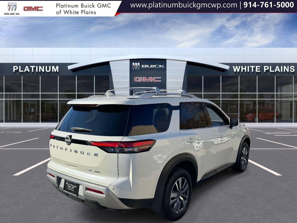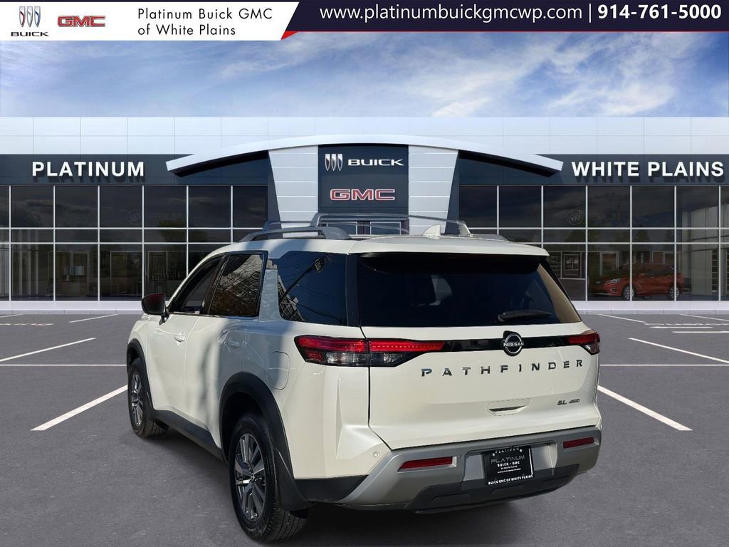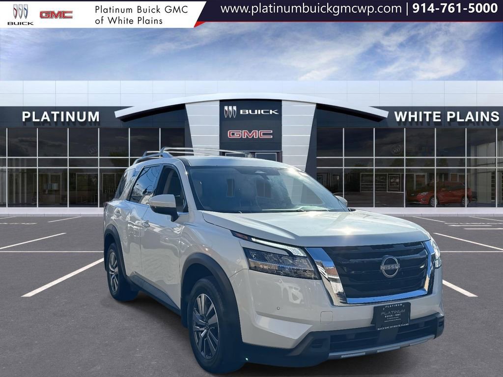 Pearl White Tricoat 2023 Nissan Pathfinder SL 4WD 9-Speed Automatic V6 4WD, 18 Machined Alloy Wheels, 3rd row seats: bench, 4-Wheel Disc Brakes, 6 Speakers, ABS brakes, Air Conditioning, Alloy wheels, AM/FM radio: SiriusXM, Auto High-beam Headlights, Automatic temperature control, Brake assist, Cross Bars, Delay-off headlights, Dual front impact airbags, Dual front side impact airbags, Electronic Stability Control, Emergency communication system: NissanConnect Services, Exterior Parking Camera Rear, Four wheel independent suspension, Front anti-roll bar, Front Bucket Seats, Front dual zone A/C, Fully automatic headlights, Heated Front Bucket Seats, Heated front seats, Knee airbag, Leather Seating Surfaces, Low tire pressure warning, Navigation system: NissanConnect Navigation, NissanConnect w/Navigation & Services, Occupant sensing airbag, Overhead airbag, Panic alarm, Power driver seat, Power Liftgate, Power passenger seat, Power steering, Power windows, Radio data system, Radio: AM/FM Audio System, Rear air conditioning, Rear anti-roll bar, Rear side impact airbag, Rear window defroster, Reclining 3rd row seat, Remote keyless entry, Security system, Speed control, Speed-sensing steering, Steering wheel mounted audio controls, Traction control.Odometer is 16385 miles below market average!The listed price reflects the vehicle's finance amount after a twenty-five hundred down payment. The price does not include sales tax, title, registration, tags, government fees, $995 dealer processing fee, optional protection products, or additional aftermarket items, such as a theft-recovery system. All vehicles are sold cosmetically as-is. We are proud to support our community by offering special discounts to active and retired military personnel, law enforcement officers, teachers, medical professionals, and municipal employees. Eligibility, documentation, and discount amounts vary by program and vehicle. Please contact us for full program details and verification requirements. We work with multiple banks and credit unions to offer flexible financing options, subject to credit approval and credit tier. Customers of all credit backgrounds are welcome, including those with past bankruptcies, repossessions, limited credit, or no credit. Same-day delivery may be available, please contact us for eligibility and terms. Although every reasonable effort has been made to ensure the accuracy of the information on this site, Platinum GMC Buick cannot guarantee absolute accuracy. Vehicle availability, pricing, and specifications may change without notice. Vehicles shown online may have been sold, removed, or may differ slightly from the displayed description due to posting delays. Each vehicle is unique and offered in limited quantity based on its specific features, options, colors, and mileage. By submitting a lead form you are consenting to be contacted by phone, email and/or text. Opt out of text anytime by responding stop.