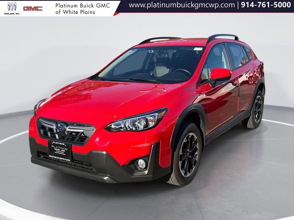 Pure Red 2023 Subaru Crosstrek Premium AWD Lineartronic CVT 2.0L 4-Cylinder DOHC 16V 4-Wheel Disc Brakes, 6 Speakers, ABS brakes, Air Conditioning, Alloy wheels, AM/FM radio: SiriusXM, Anti-whiplash front head restraints, Automatic temperature control, Brake assist, CD player, Dual front impact airbags, Dual front side impact airbags, Electronic Stability Control, Emergency communication system: STARLINK Safety and Security (Subscription Required), Exterior Parking Camera Rear, EyeSight System, Four wheel independent suspension, Front anti-roll bar, Front Bucket Seats, Front fog lights, Fully automatic headlights, Heated Front Bucket Seats, Heated front seats, High Grade Combination Meter w/Color LCD Display, Illuminated Front Center Console Storage Tray, Knee airbag, Leather-Wrapped Shift Lever Handle, Low tire pressure warning, Occupant sensing airbag, Overhead airbag, Overhead Console Shower Light, Panic alarm, Power steering, Power windows, Radio data system, Radio: Subaru STARLINK 6.5 Multimedia Plus System, Rear anti-roll bar, Rear Seat Reminder, Rear window defroster, Remote keyless entry, Security system, Speed control, Speed-sensing steering, Standard Model (CVT), STARLINK/Apple CarPlay/Android Auto, Steering wheel mounted audio controls, Tire Pressure Monitoring System, Traction control, Wheels: 17 x 7.0J Alum Alloy Blk w/Machine Finish.