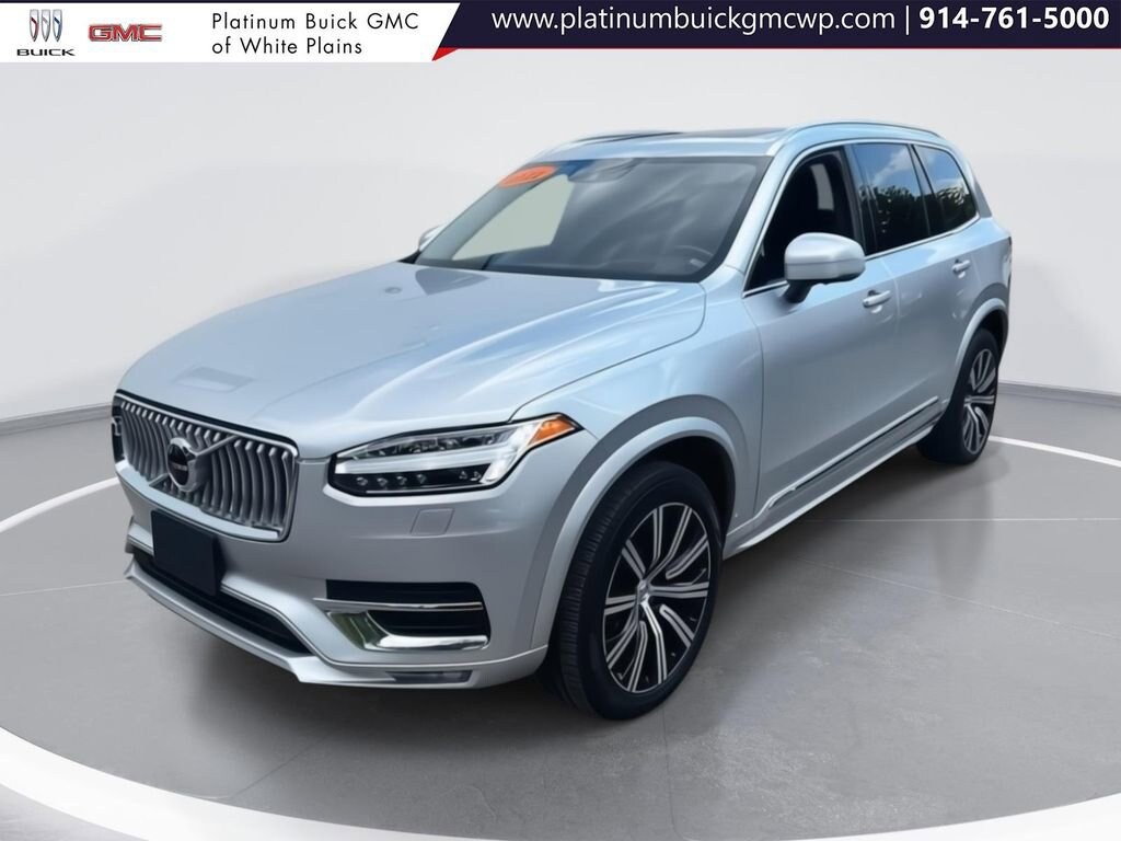 Bright Silver Metallic 2022 Volvo XC90 T6 Inscription AWD Automatic with Geartronic 2.0L I4 Turbocharged DOHC 16V LEV3-ULEV70 316hp AWD, Charcoal w/Perforated Nappa Leather Upholstery, 14 Speakers, 360 Surround View Camera, 3rd row seats: bucket, 4-Wheel Disc Brakes, ABS brakes, Advanced Package, Air Conditioning, Air Purifier, Alloy wheels, AM/FM radio: SiriusXM, Anti-whiplash front head restraints, Apple CarPlay/Android Auto, Auto High-beam Headlights, Auto-dimming door mirrors, Auto-dimming Rear-View mirror, Automatic temperature control, Bodyside moldings, Brake assist, Climate Package, Delay-off headlights, Dual front impact airbags, Dual front side impact airbags, Electronic Stability Control, Emergency communication system: Volvo Cars App w/4 Year Subscription, Exterior Parking Camera Rear, Four wheel independent suspension, Front anti-roll bar, Front Bucket Seats, Front dual zone A/C, Front fog lights, Fully automatic headlights, Genuine wood dashboard insert, Genuine wood door panel insert, Graphical Head-Up Display, harman/kardon® Speakers, Headlight High Pressure Cleaning, Heated & Ventilated Front Bucket Seats, Heated front seats, Heated Rear Seats, Heated Steering Wheel, Knee airbag, Low tire pressure warning, Memory seat, Navigation system: Sensus Navigation, Occupant sensing airbag, Overhead airbag, Panic alarm, Perforated Nappa Leather Upholstery, Power driver seat, Power moonroof, Power passenger seat, Power steering, Power windows, Premium audio system: Sensus Connect, Radio data system, Radio: harman/kardon Premium Audio System, Rear air conditioning, Rear anti-roll bar, Rear dual zone A/C, Rear fog lights, Rear window defroster, Remote keyless entry, Security system, Speed control, Speed-sensing steering, Split folding rear seat, Steering wheel mounted audio controls, Traction control, Ventilated front seats, Wheels: 20 10-Spoke Black Diamond Cut Alloy.